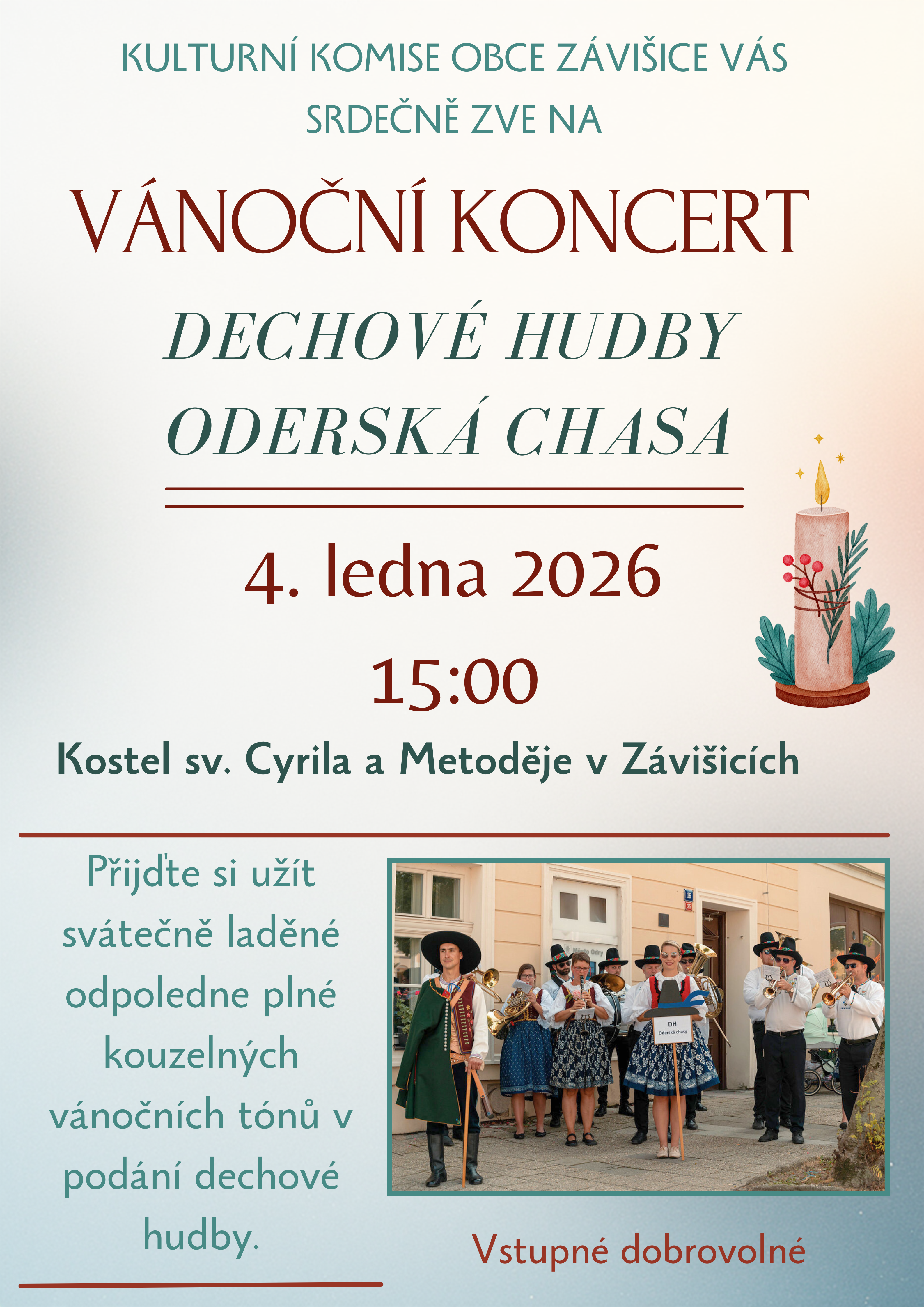 Těšíme se na Vás! Pojďme si Vánoce prodloužit! #VánočníKoncert #Závišice #OderskáChasa #ProdlužujemeVánoce