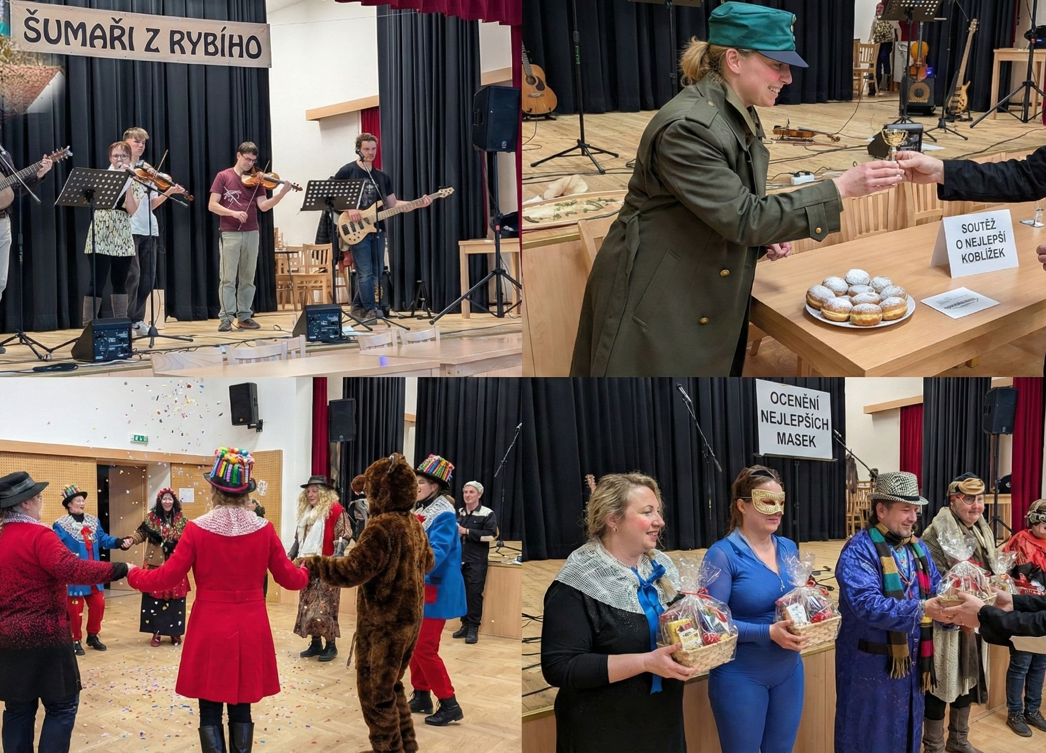 Šumaři z Rybího – zahrají k poslechu i do skoku! Kulturní program – pro malé i velké diváky. Vyhodnocení – zjistíme, kdo upekl nejlepší koblížek (a všechny je společně sníme!). Ocenění masek – ty nejlepší maškary neminou zasloužené ceny. Výstava dobových náčiní, nástrojů a předmětů z Lašska.